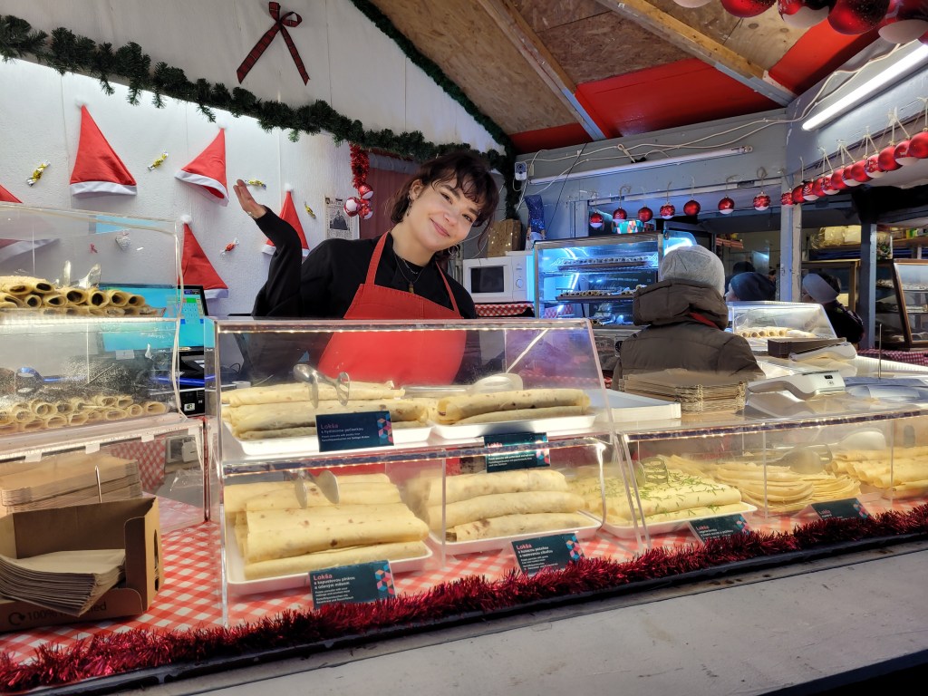 Loksa’s come in sweet and savory options. Consisting of a potato pancake made from potatoes, flour, and eggs, they’re fried or baked until golden brown, then filled with savory options such as cheese or different livers such as goose liver, or sweet options that include Nutella and fruit spreads. I sampled a goat cheese loksa at the Christmas market – there were dozens of options to choose from – and it was savory and satisfying.