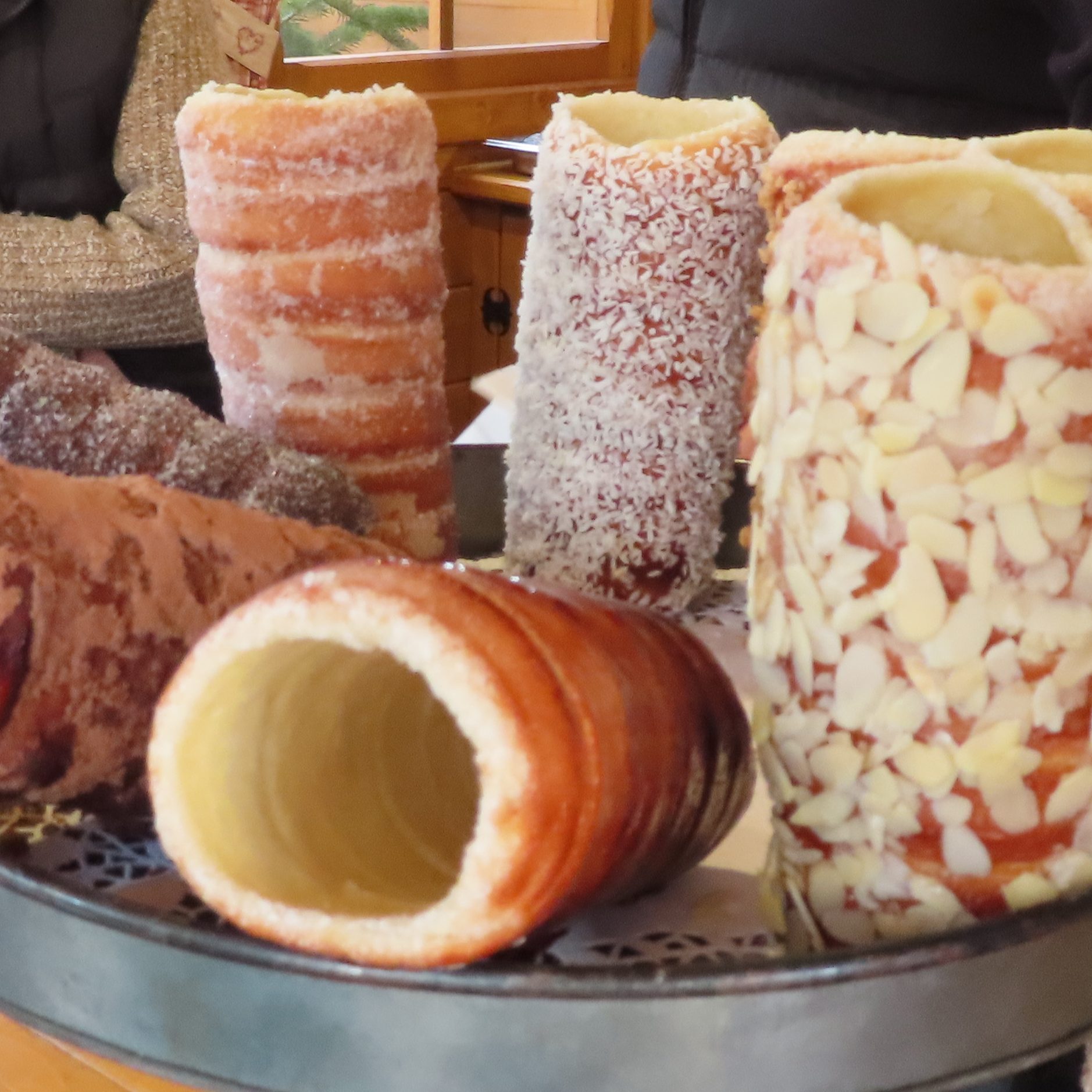 Our culinary exploration began in Budapest, Hungary, where the sweet aroma of kürtőskalács, or chimney cake, filled the air as we walked the cobblestone streets exploring the Christmas markets. These cylindrical pastries are made by wrapping dough around a cone-shaped mold and then roasting it over an open flame until golden brown. The result is a crispy exterior that gives way to a soft and doughy inside. Coated in sugar, cinnamon, or nuts, chimney cakes are a popular street food in Budapest, offering a delightful start to your culinary journey. Be sure and seek out cakes cooked over an open fire for an authentic flavor and crunch.