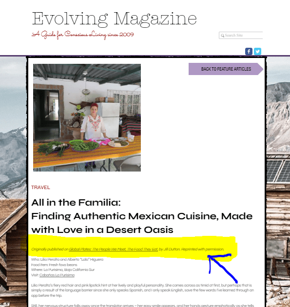 When posting an article on your website, include verbiage such as “Originally published on Global Journeys with Jill Dutton,” and be sure to include a link back to the original article.